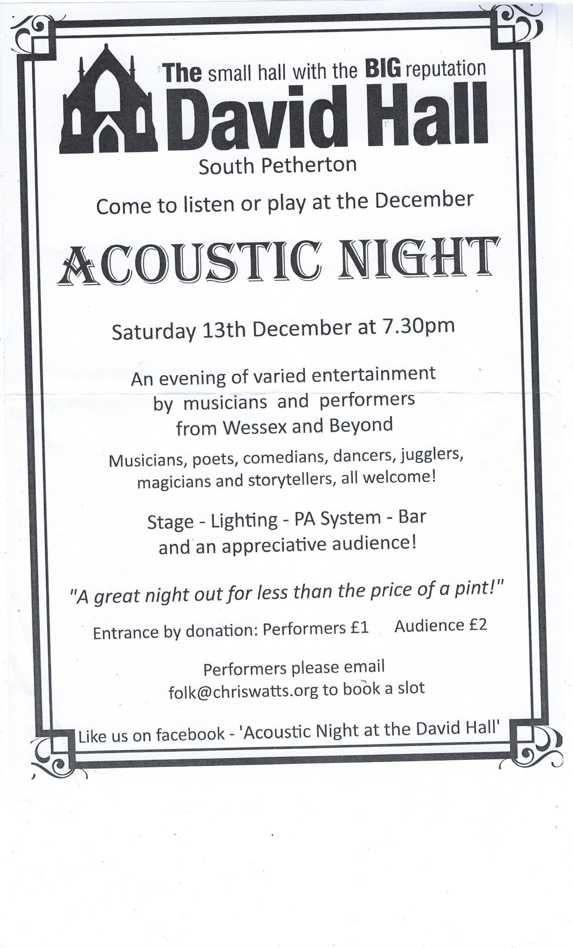 Acoustic Night The David Hall, South Petherton, Roundwell Street, South Petherton