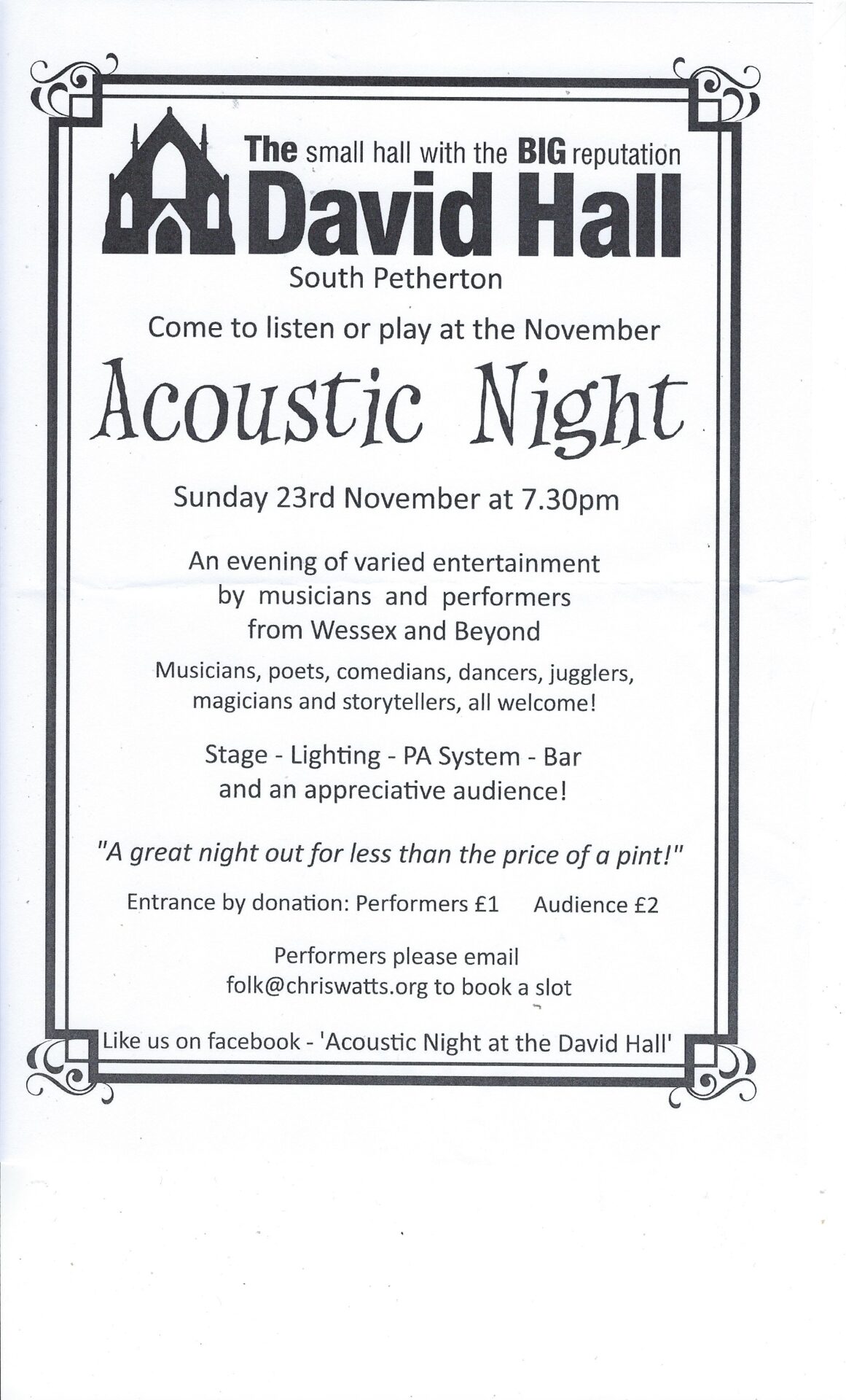 An evening of varied entertainment by musicians and performers from Wessex & beyond